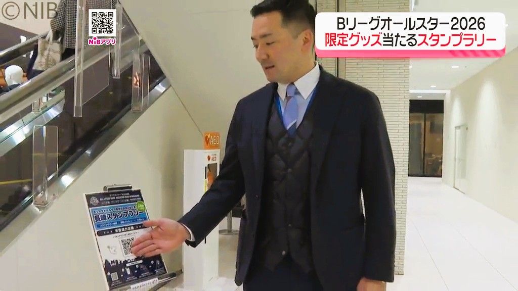 「6日から始まった、Bリーグオールスターのスタンプラリー。長崎市内を中心に、県内200か所に2次元コードのスポットが設置され、3か所で読み込むと抽選に参加できる」