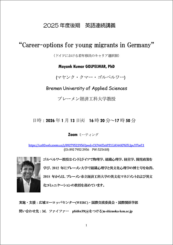 2025年度後期英語による特別講義「Career-options for young migrants in Germany (ドイツにおける若年移民のキャリア選択肢)」