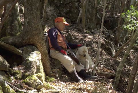 犬と共に猟をする岩崎康道さん