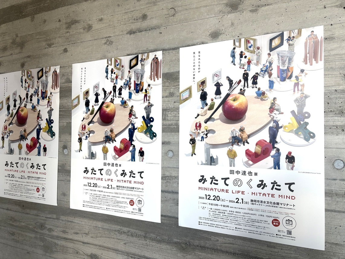 静岡新聞論説委員がお届けするアートやカルチャーに関するコラム。今回は静岡市清水区の市清水文化会館マリナートで2025年12月20日に開幕した「田中達也展 みたてのくみたて in 静岡」を題材に。