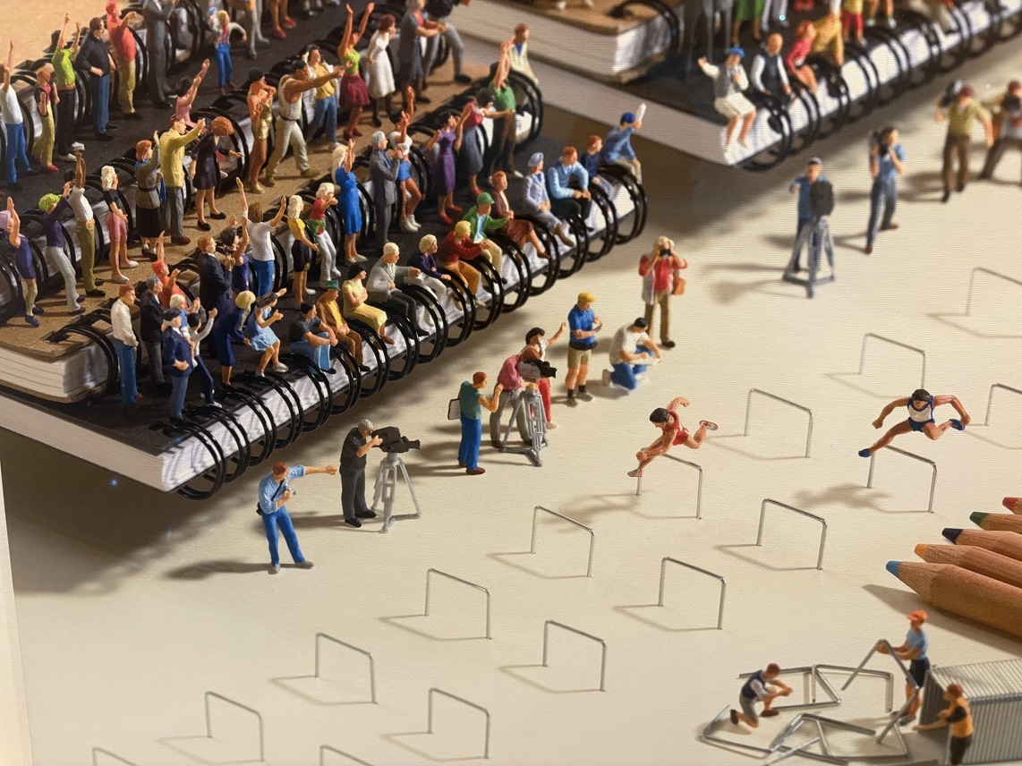 人口密度が高い。老若男女、あらゆる世代がそこにいた。田中達也さんの「みたて」作品は、見る人を選ばない。2022年6~7月に同じ会場で行った「みたて」展以上の熱気である。3年半でさらに知名度を上げたのだろう。