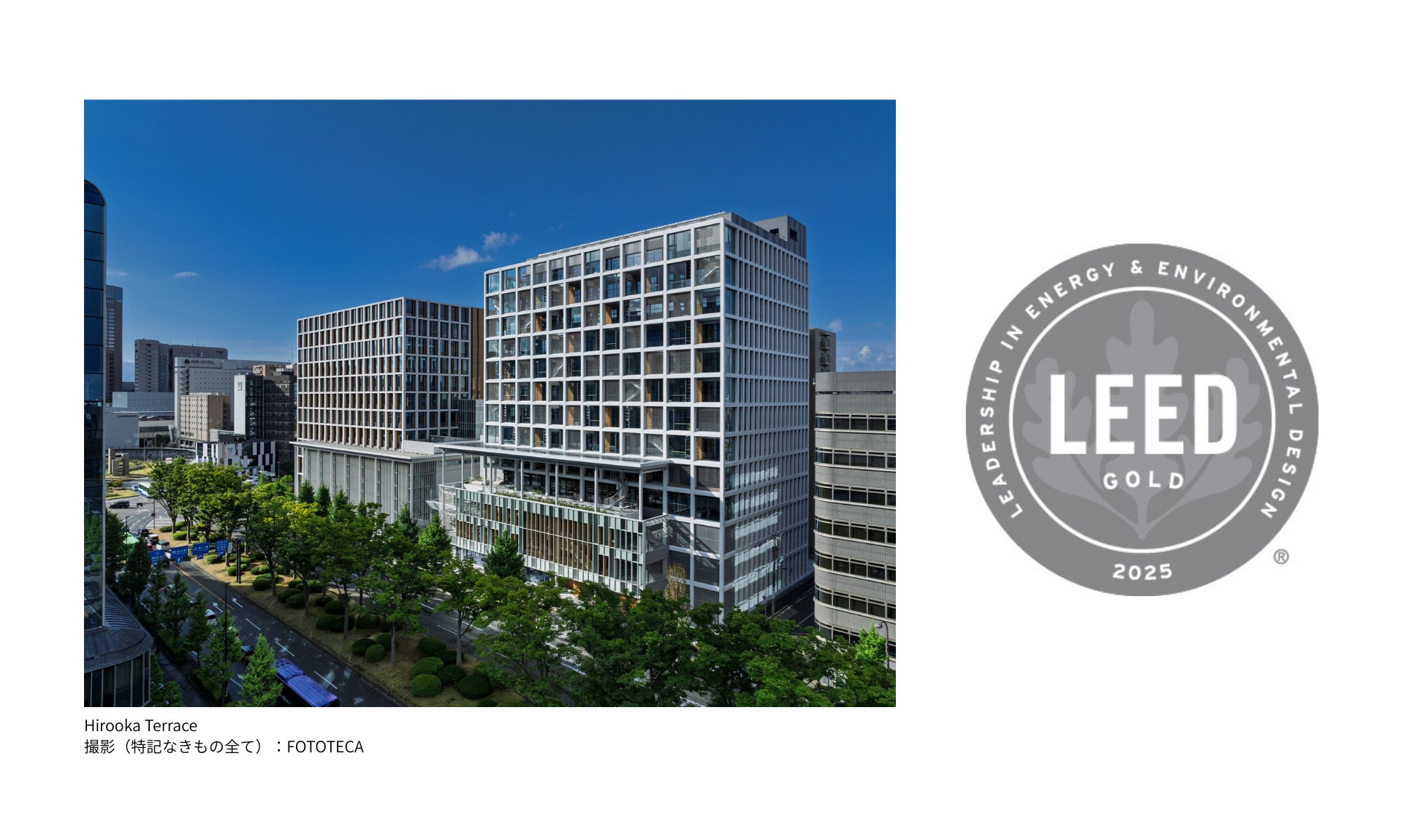 株式会社CCIグループ(本社:石川県金沢市、代表取締役社長:杖村 修司)が保有する「Hirooka Terrace(ヒロオカテラス)」(竣工:2025年夏)が、グリーンビルディングの国際認証規格であるLEED® BD+C: New Construction(LEED® for Building Design and Construction: New Construction)v4の「ゴールド」を取得しました。本プロジェクトは、株式会社三菱地所設計(本社:東京都千代田区、代表取締役社長:谷澤 淳一)が設計監理を担当し、株式会社ヴォンエルフ(本社:東京都千代田区、代表取締役:平松 宏城)が認証取得支援を実施しました。石川県内のテナントオフィスビルとしては、初のLEED®認証取得事例です。