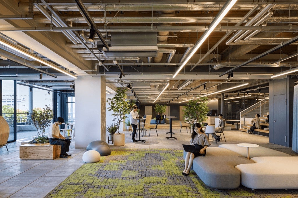 左:13階。オフィス空間とテラスをシームレスに接続し、屋内外の一体利用を可能とします。