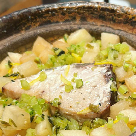 福島市のイタリアン「Aoyagi」では、1月31日(土)まで、冬の福島食材と「FUKUSHIMA SAKE SEVEN」全蔵の酒によるペアリングを提供。