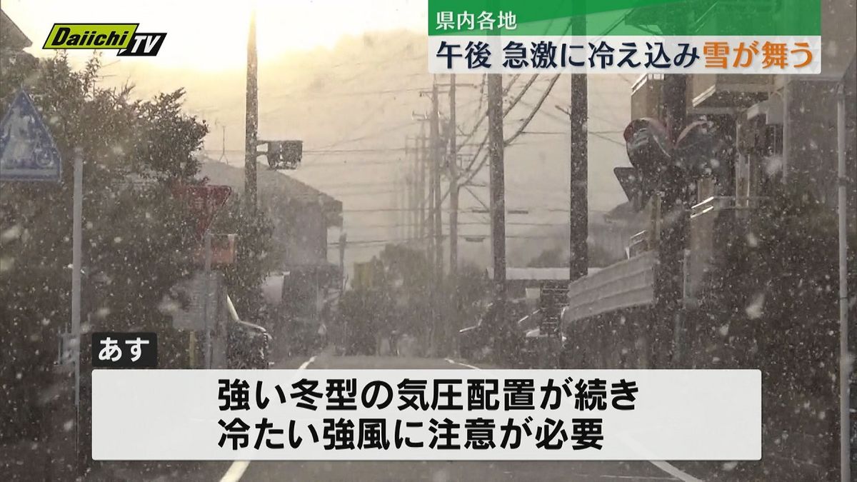 また、冬型の強い気圧配置となった県内には雪雲が流れ込み、夕方には各地で雪が舞いました。