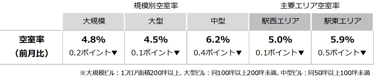 空室率 4ヵ月連続の低下 「駅東」は0.5ポイントの大幅な低下