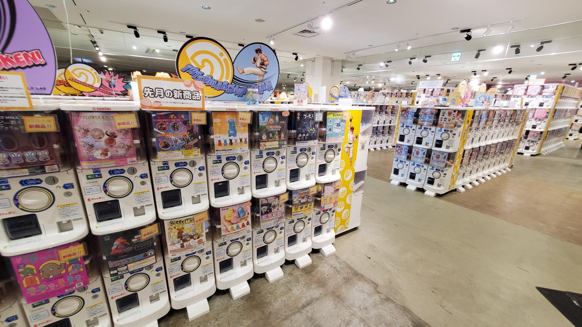 クッキーを焼いて冷ます時間が約60分あるのですが、完成までの時間をつぶすのにぴったりなお店が、5階にあります。それがこのガチャガチャスポットの「CAPSULE LAB」。数え切れないぐらいの多くのガチャガチャがあってガチャ好きにはたまらない空間になっています。