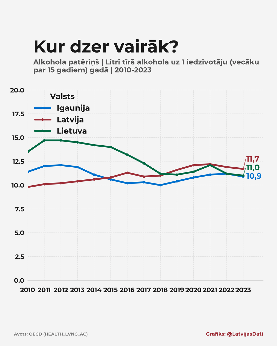 バルト三国とラトビアのアルコール消費量