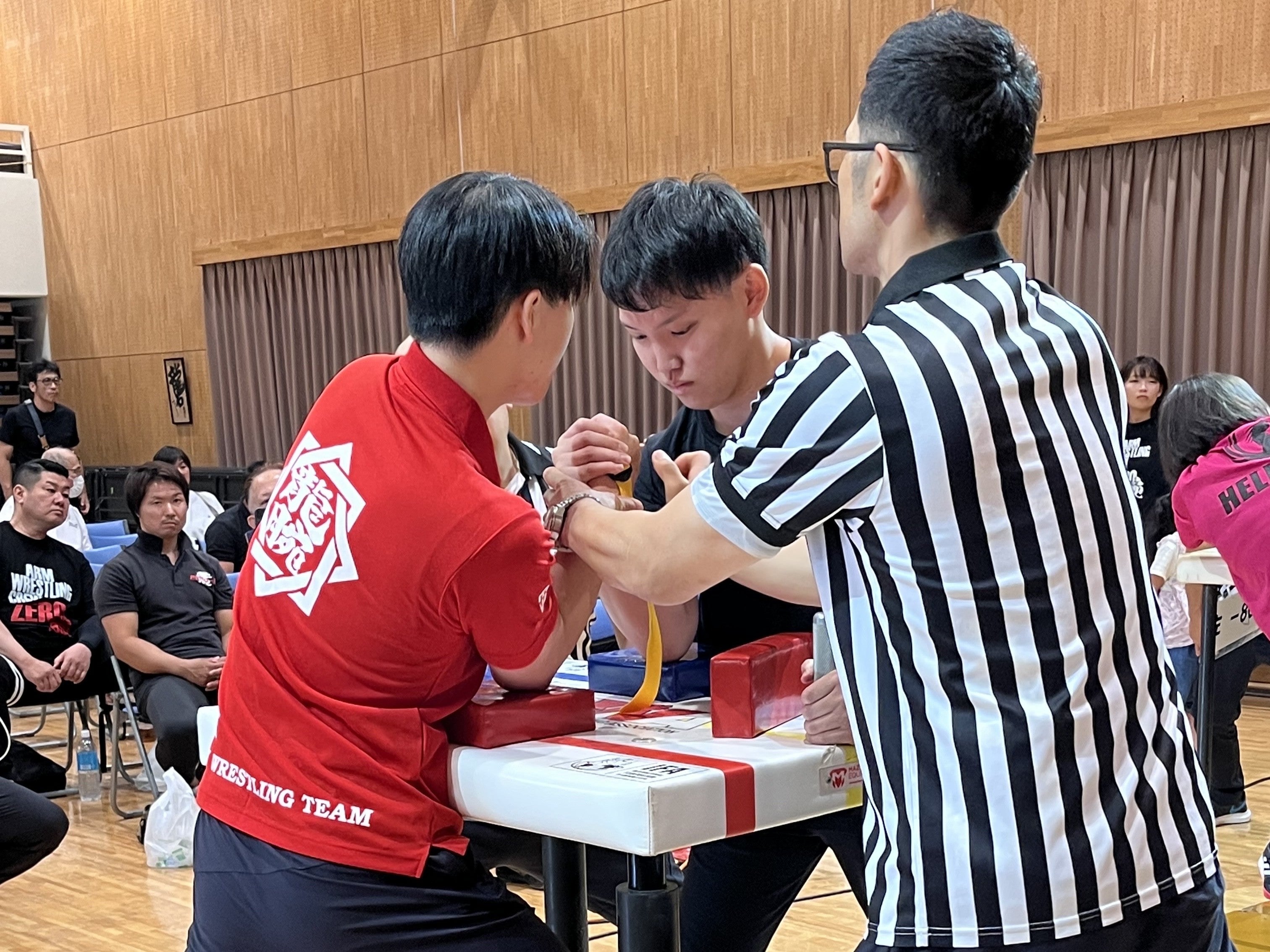 当日は11:30よりイベントスタート。まずは地元の中高生を対象とした「アームレスリング体験会」から始まり、会場のボルテージが上がったところでトップ選手たちによる白熱の「5対5チーム対抗戦」へと続きます。