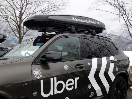 本サービスでは、白馬村で貸切バス・観光バス事業などを展開する有限会社白馬交通(以下「白馬交通」)の契約ドライバーが運転する車両を、Uberアプリで配車できるようになります。また、Matsumoto BMWの提供により、Uberの特別ラッピングが施されたBMW車両が展開されます。複数のスキー板やスノーボードを積載可能なラックを搭載し、ブリヂストン製スタッドレスタイヤを装着する本車両の展開により、ウィンタースポーツ目的で来訪する観光客の移動需要にスムーズに応えます。