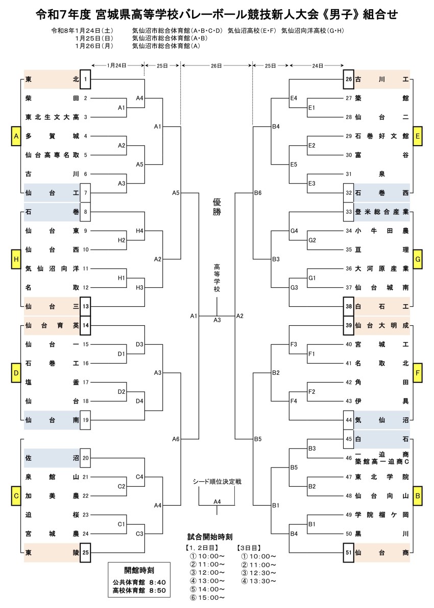男子 気仙沼市本吉総合体育館、 気仙沼高校、気仙沼向洋高校