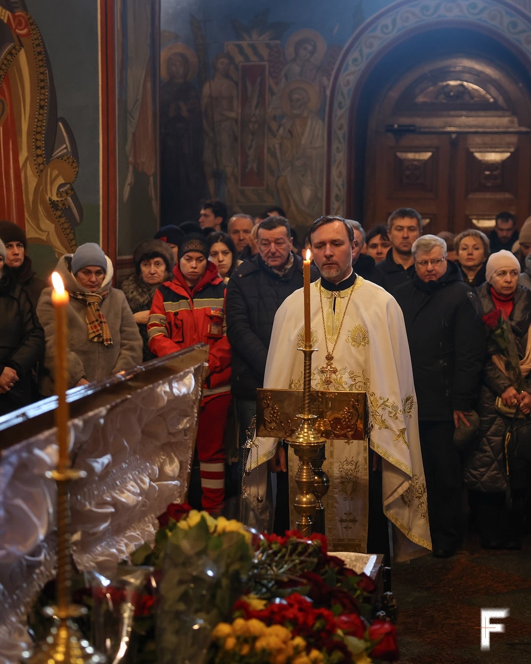キエフは、ダブルタップ攻撃で死亡した救助隊員セルヒイさんに別れを告げた。彼と家族は2022年にノヴァ・カホフカから逃亡した。