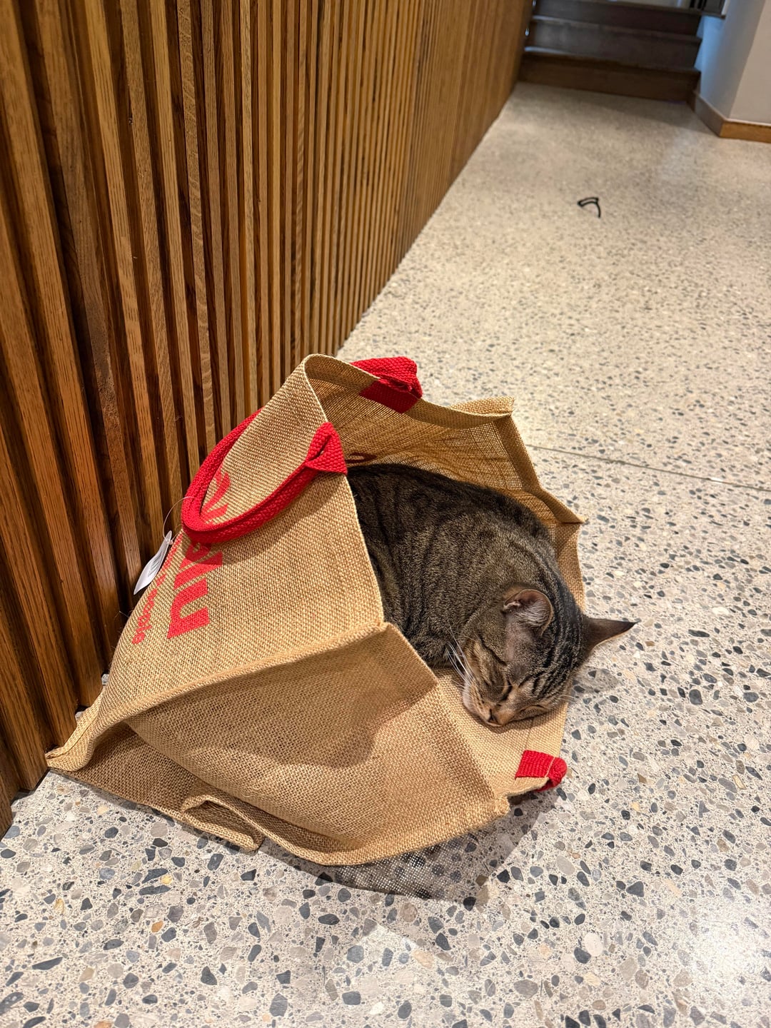 ここが彼の新しいお気に入りの睡眠場所です。これからは家中にこれらのバッグを置かなければなりません。