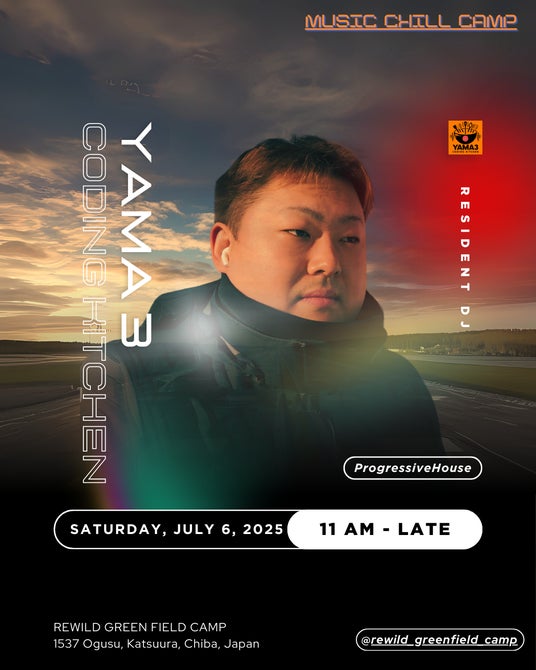 Yama3 (Coding Kitchen)音のレシピを紡ぐ、テクノロジーと音楽の交差点。システムエンジニアとして培った論理的思考と、音の流れに寄り添う感覚的な選曲を掛け合わせ、Progressive Houseを軸にしながらもジャンルの枠にとらわれず、自由で奥行きのあるグルーヴを描き出す。今回は、野外の風と炭火の香りに包まれながら、じんわりと心に沁みるようなセットをお届け。