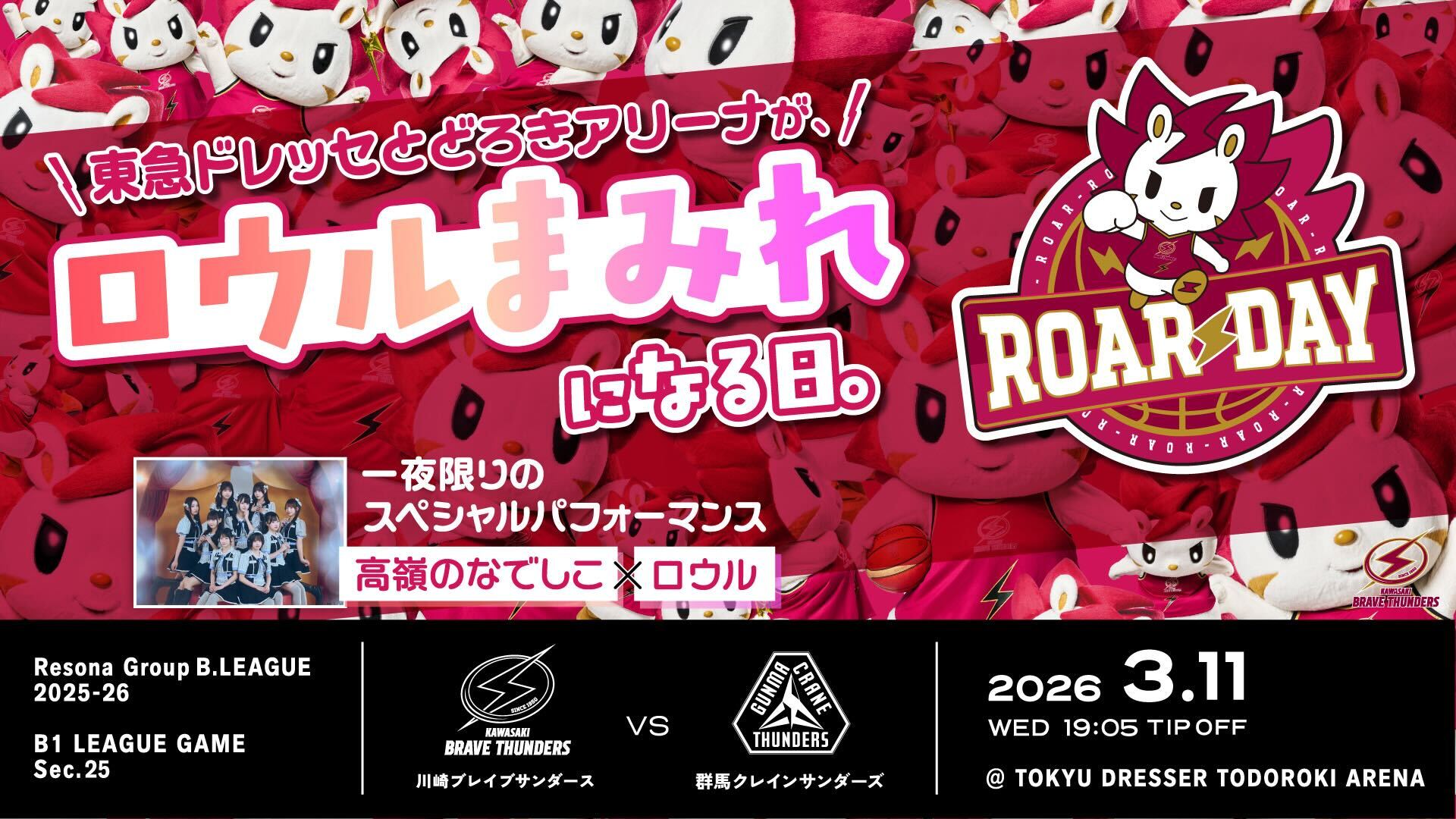 りそなグループ B.LEAGUE 2025-26 B1リーグ戦 第25節 群馬クレインサンダース戦(会場:東急ドレッセとどろきアリーナ)を「ロウルデー」として開催いたします。11月の茨城ロボッツ戦に続いての開催となり、日頃よりロウルを可愛がってくださっているサンダースファミリーの皆さまへの感謝の気持ちを込めて、特別な一日をご用意しております。