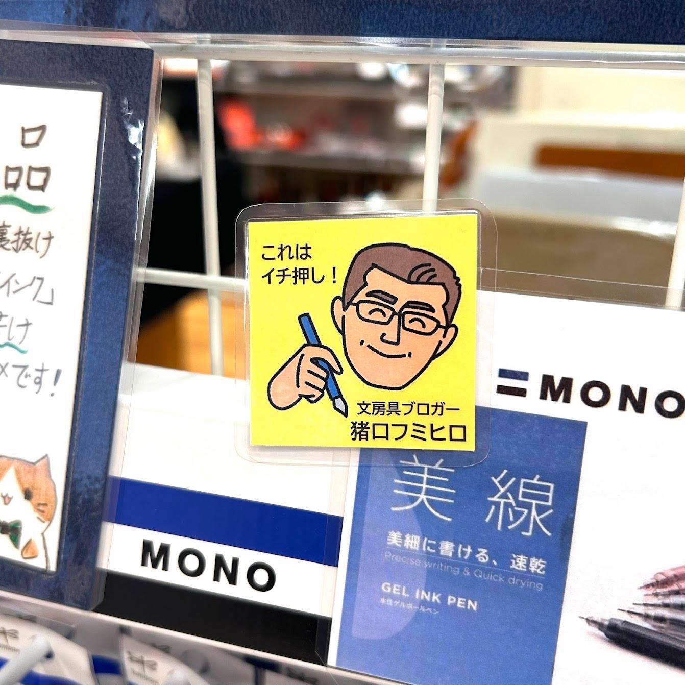 店長が派手なイチオシシールを作ってくれました。これからは、僕が推している文房具にこのマークを付けていこうと思っています。