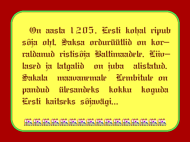Lembitu (1992) は、Aldo Mett によって作成された、DOS プラットフォーム上の古代エストニアの自由コンテストの古いゲームです。まあ、それは古代の歴史から集められています。