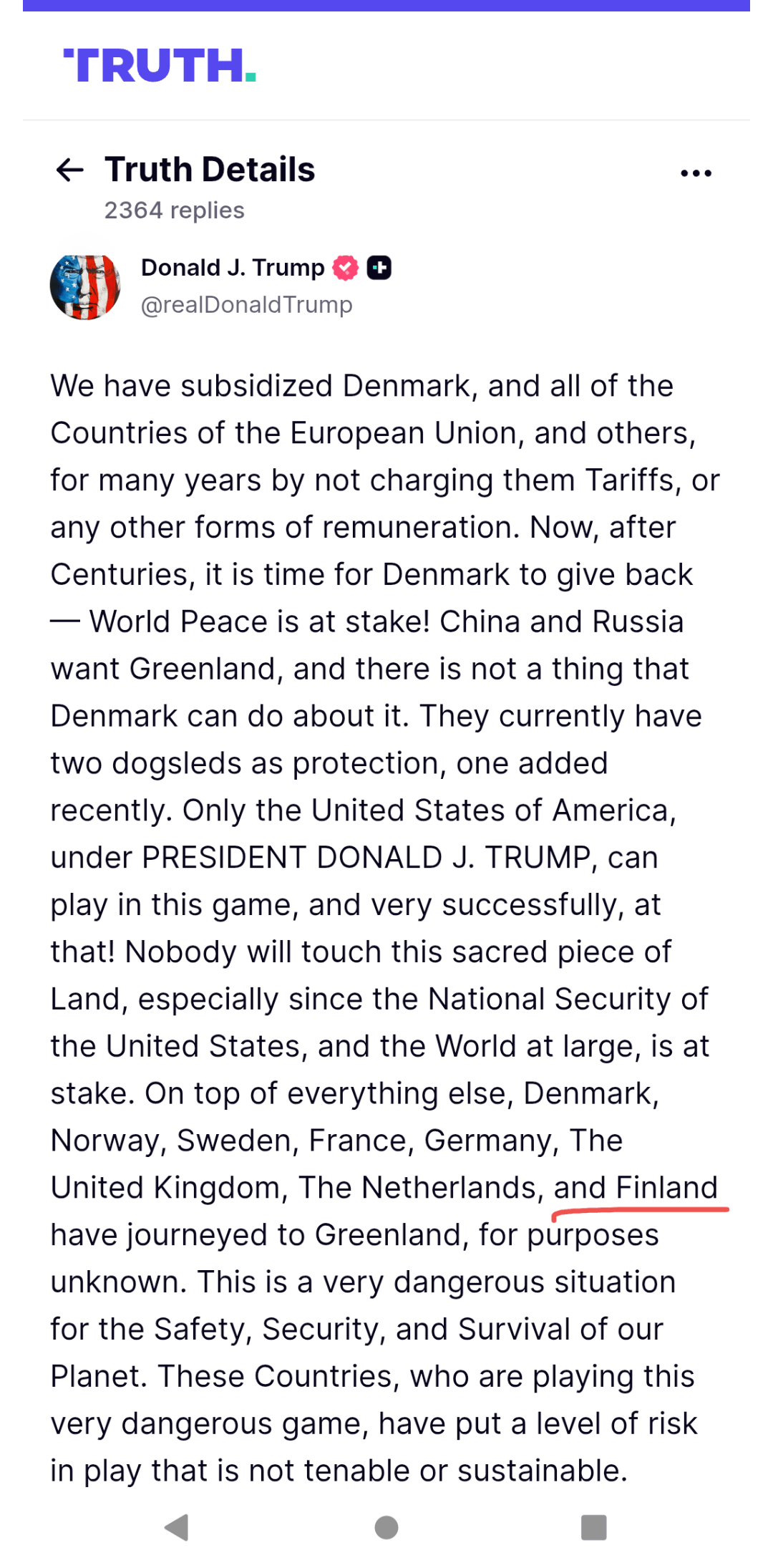 Twitter Pinterest Facebook Tumblr LinkedIn Bluesky Reddit Threads 必要に応じて、以下のリンクから投稿全文をお読みください。 https://truthsocial.com/@realDonaldTrump/posts/115911344443637897。 Finland