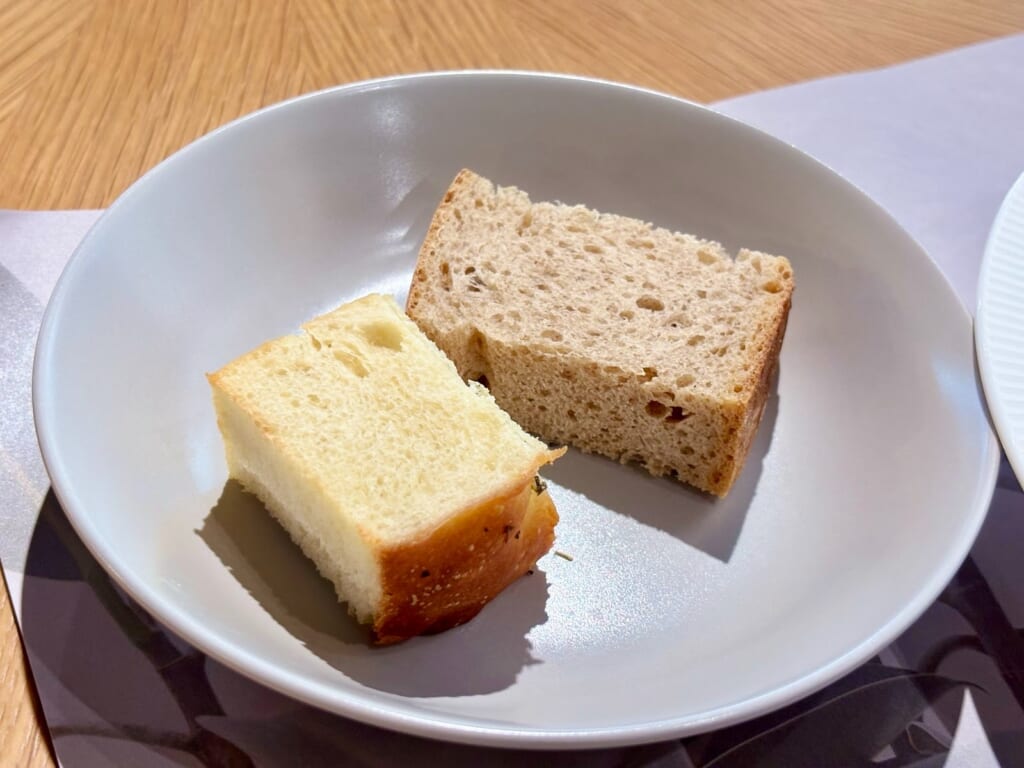 セットのパンは『フォカッチャ』と『ライ麦パン』。こちらのパンも手作りだそうで、料理との相性抜群!こだわりの詰まったパンです。