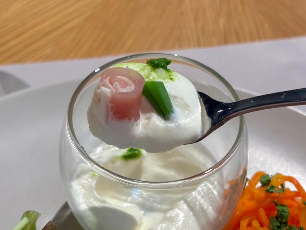 カブの風味と生クリームの滑らかさが上品なムースを作り上げており、そこに塩味のある生ハムがとっても合います!
