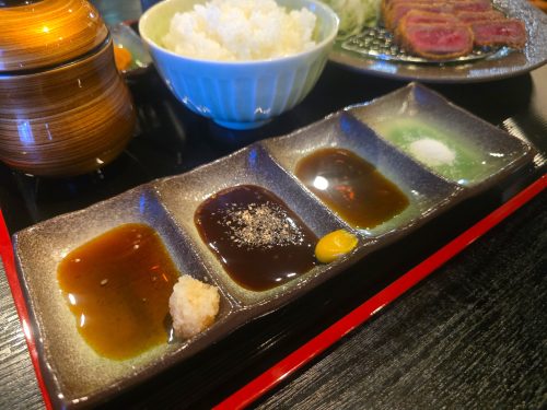 お好みでタレは、岩塩、だし醤油、カツソース、おろしポン酢の4種類の味を楽しめます。