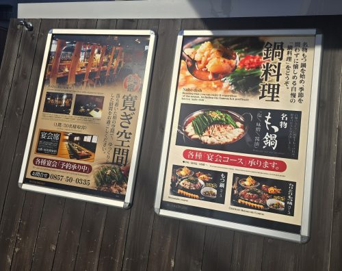 昼は“牛カツ専門店”として営業していますが、夜は「もつ宗」に店名を変えて、もつ鍋や居酒屋メニューを提供しています。昼夜でガラリと表情の変わるお店です。