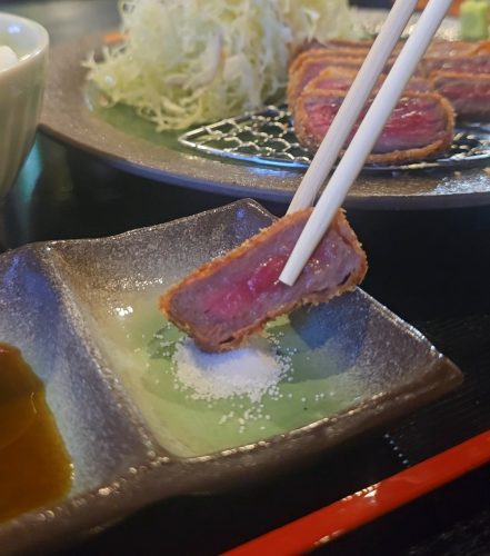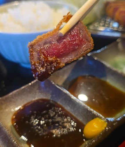 ひと口ごとに味の変化を楽しめるため、最後まで飽きることなく食べ進められます。また、衣のサクッとした食感と赤身の柔らかな食感が心地よく、牛カツを堪能できました。