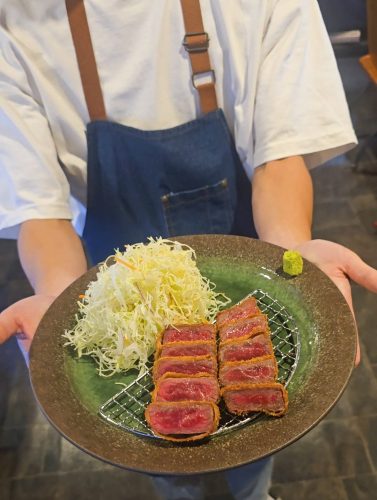 ヘルシーな赤身肉を牛カツで提供しており、和牛本来の旨味がぎゅっと凝縮されています。