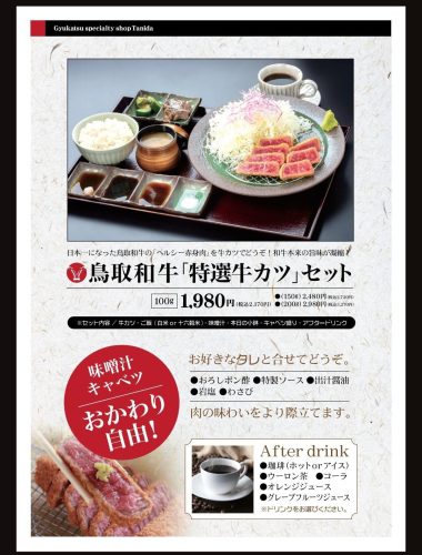 この日は、鳥取和牛を使用した「特選牛カツ」セットをオーダー。