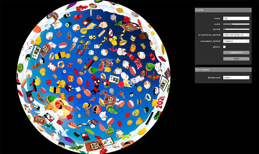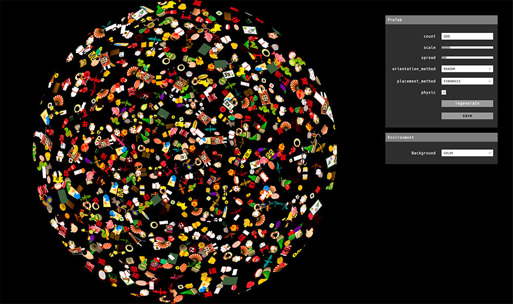 ▲パラメータを変更すれば、出題パターンは無限に生成可能。「答え」のオブジェクトは、出題パターン生成後にランダム配置を行い、その後手作業で微調整しながら最終的な配置を決めていく