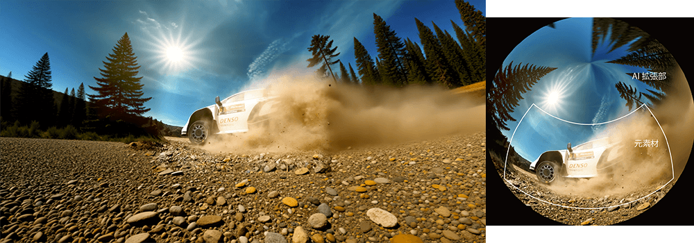 ▲AIで背景を拡張して広角にした例。左:元素材、右:拡張後