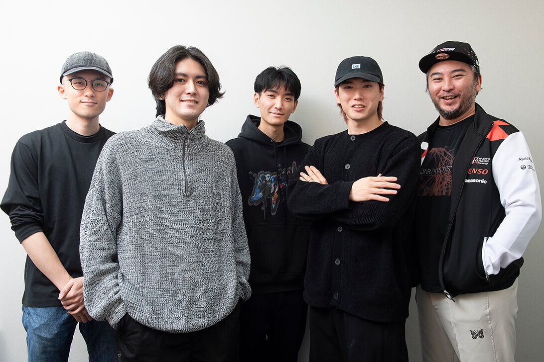 左から、クリエイティブエンジニア・和泉 凜氏、CGデザイナー・大澤 岳氏、ビジュアルプログラマー・笹栗 峻氏、エクスペリエンスデザイナー:吉田開登氏、エグゼクティブプロデューサー・稲葉繁樹氏(以上、ティーアンドエス THINK AND SENSE部)