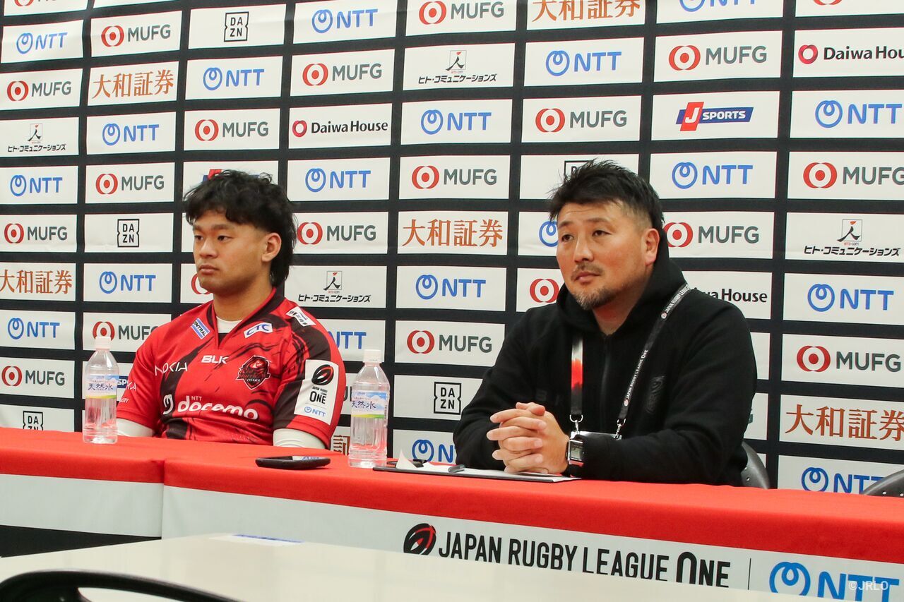 「はじめに、みなさん、お忙しい中お集まりいただき、ありがとうございます。また、本日は1万人以上の観客数でのビジターゲームでした。たくさんのお客さまを招いてくださったRH大阪さんはもちろんのこと、われわれのファンのみなさんも足を運んでいただき、この環境でラグビーができたことを非常にうれしく思います。