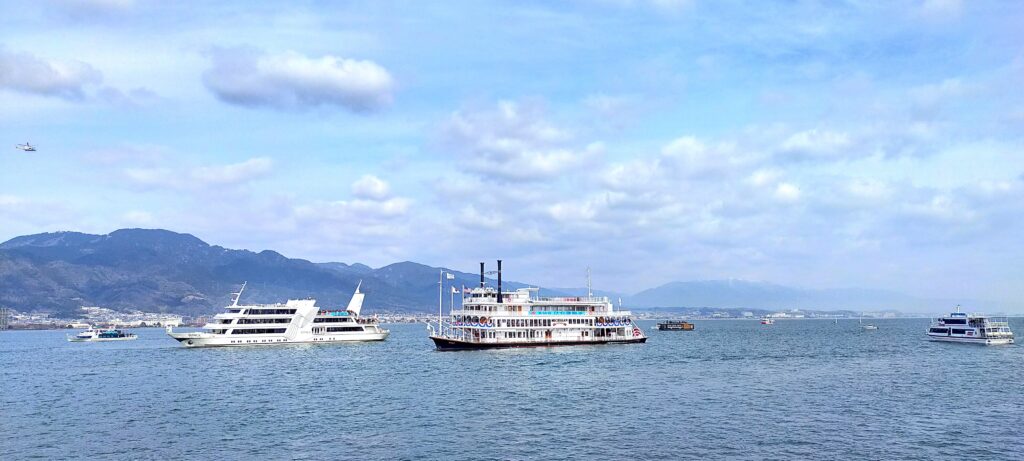 湖上観光に春の到来と安全を祈願する恒例の「びわ湖開き」の湖上パレードには一般の方も事前ご予約にてご乗船いただくことができます。
