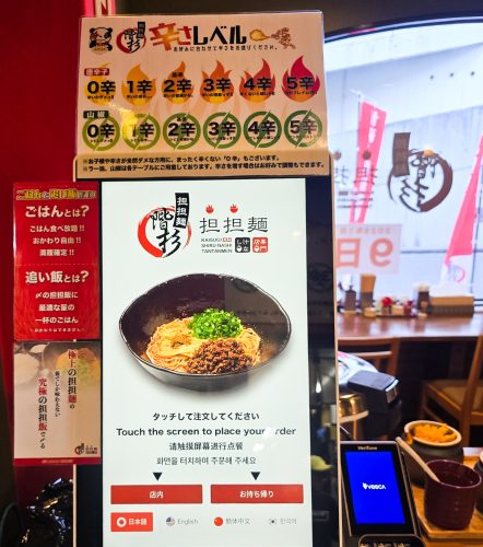 入口近くに設置されたタッチパネル式の券売機で注文します。