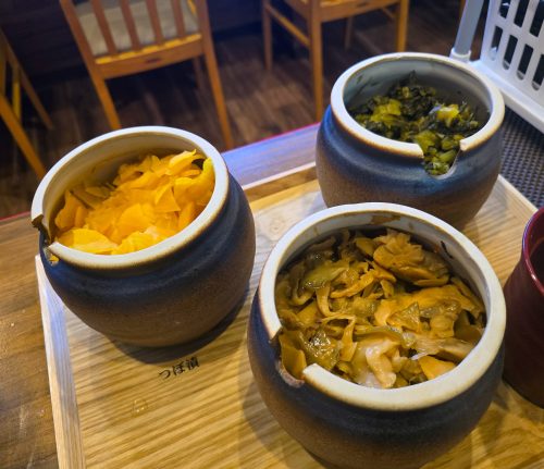 漬物は、ご飯類と酒類どちらかを頼まれた方が漬物食べ放題になります。