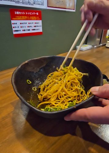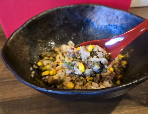 麺を食べ終えたら、〆の「追い飯」を入れるのがおすすめ。残った具材とタレとよく混ぜ合わせ、最後まで余すことなく楽しめました。