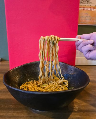 細い麺に、醤油ダレやラー油、肉味噌のコクと旨味が、ほどよく絡み深みのある味です。