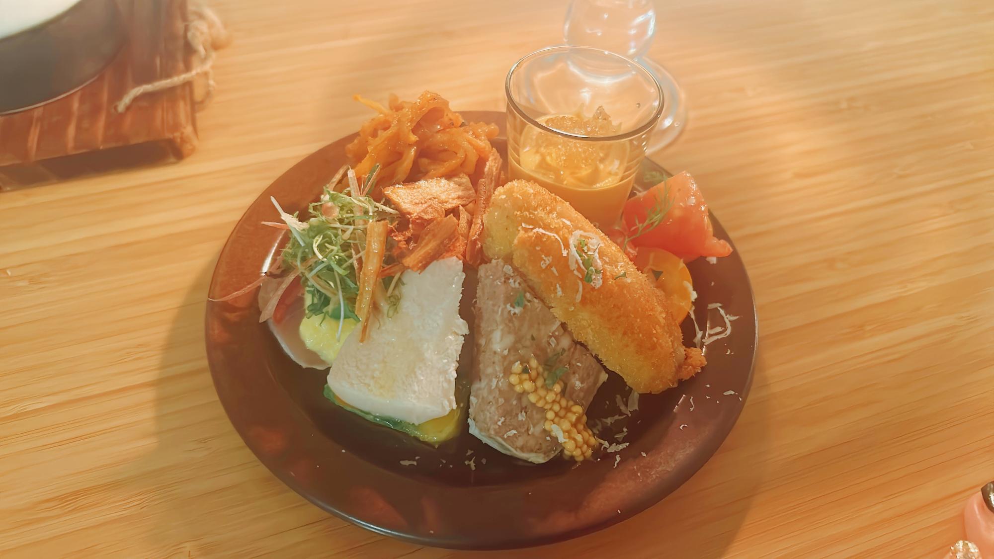 お皿一杯に工夫を凝らした品々がのっており、どこから食べるか迷うこと間違いなし!