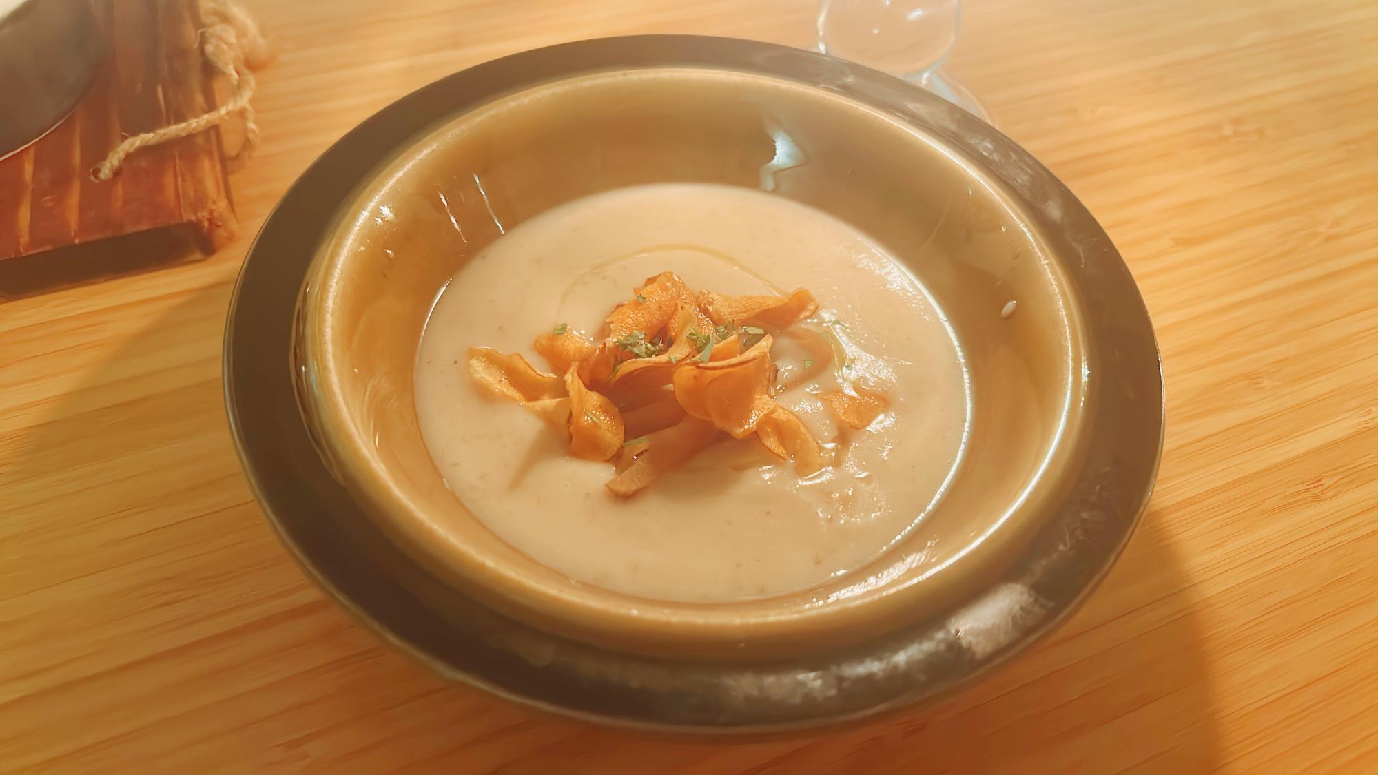 菊芋のポタージュにはきんぴらやチップスが入っており、その食感の違いと菊芋の風味を存分に楽しむことができます。