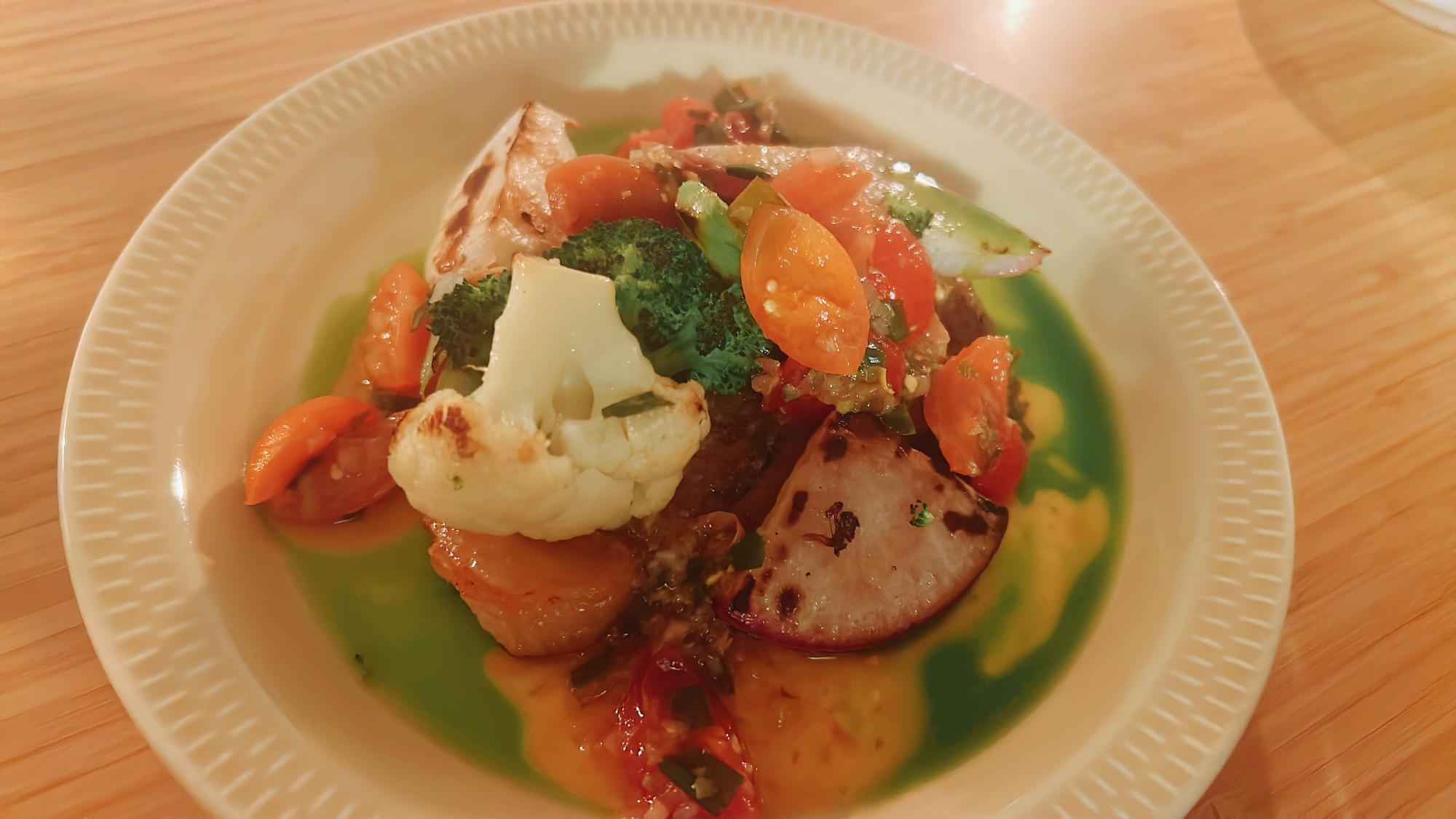 グリルされた野菜でお肉が見えないほどですが、梅の風味が味を引き立てている豚肉はボリュームもしっかりあります。