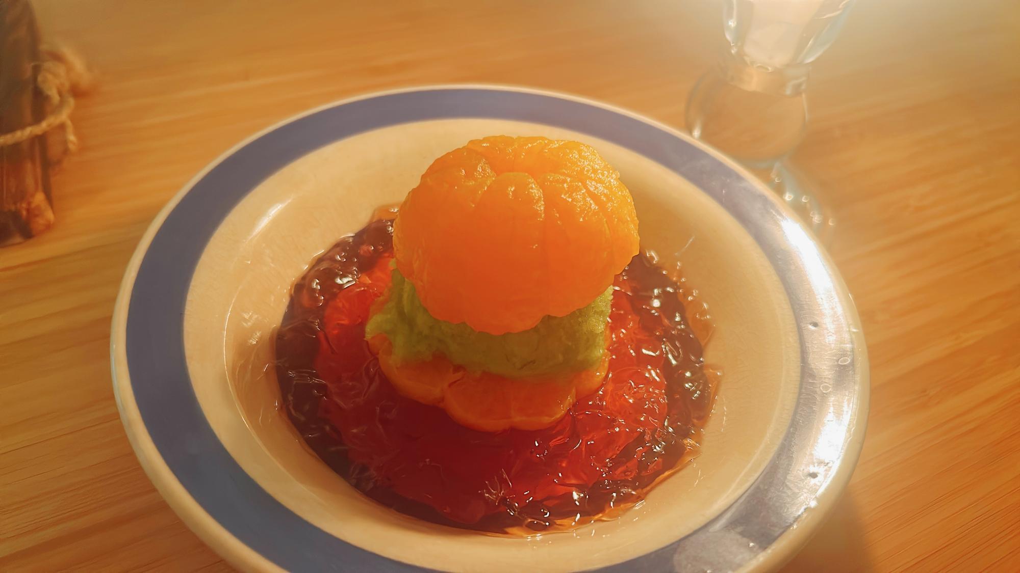 みかん×大葉シャーベット×紅茶ジュレという未知の組み合わせが、想像以上の爽やかさで感動のおいしさに!