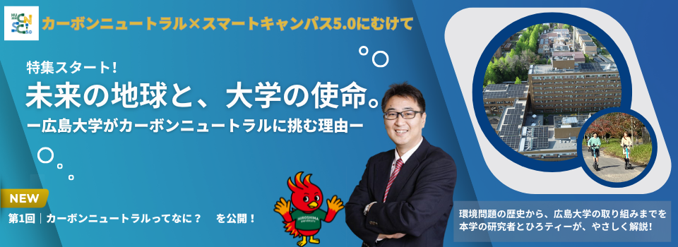 ただ、最近よく耳にするようになったこの「カーボンニュートラル」って「どんな意味なの?」「どうしてそんなに大切なの?」と疑問を感じている人も多いのではないでしょうか。そこで広島大学では、カーボンニュートラルの誕生から、環境問題の歴史、現在の各国や広島大学の取り組み状況をわかりやすく伝える特集「未来の地球と大学の使命-広島大学がカーボンニュートラルに挑む理由-」を新たにスタートします。
