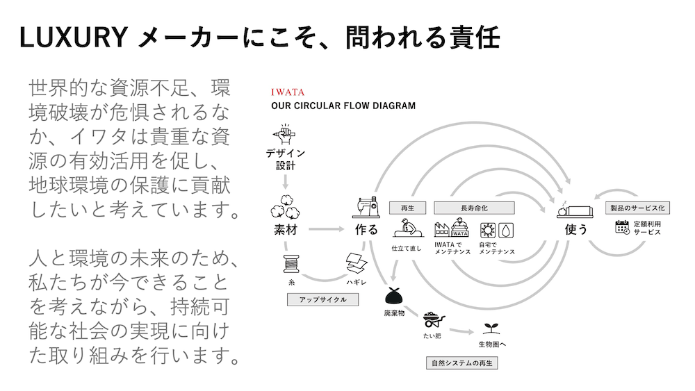 続いて、実際に京都でサーキュラービジネスを推進している、または今後京都での展開を予定している3社によるプレゼンテーションが行われた。老舗企業からスタートアップまで、多岐にわたる実践のアプローチを見てみよう。