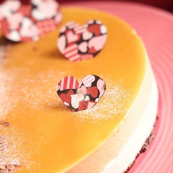 土台となる自家製チョコレート生地に、オレンジゼスト(果皮)の清涼感をプラスしたホワイトチョコレートムース、キャラメル特有のほろ苦さが際立つムースを重ねた、贅沢な三層仕立て。