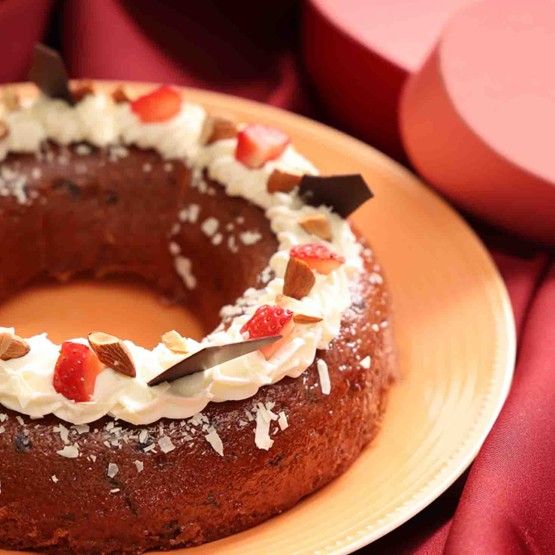 さらにチョコチップを生地に忍ばせ、食感と甘みのアクセントをプラス。トップには滑らかなクリームと苺、クラッシュアーモンドをあしらい、ナパージュで宝石のような艶の煌めきを。ピエモンテ産ヘーゼルナッツの豊かな余韻と、目にも鮮やかな装いが、特別なバレンタインを優雅に彩ります。