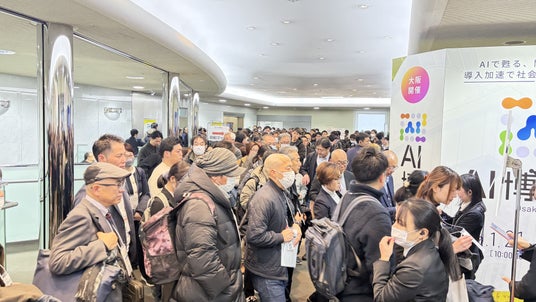 午前10時の開場と同時に、最新のAIトレンドを求める企業のDX推進担当者や経営者など、多くのビジネスパーソンが詰めかけました。