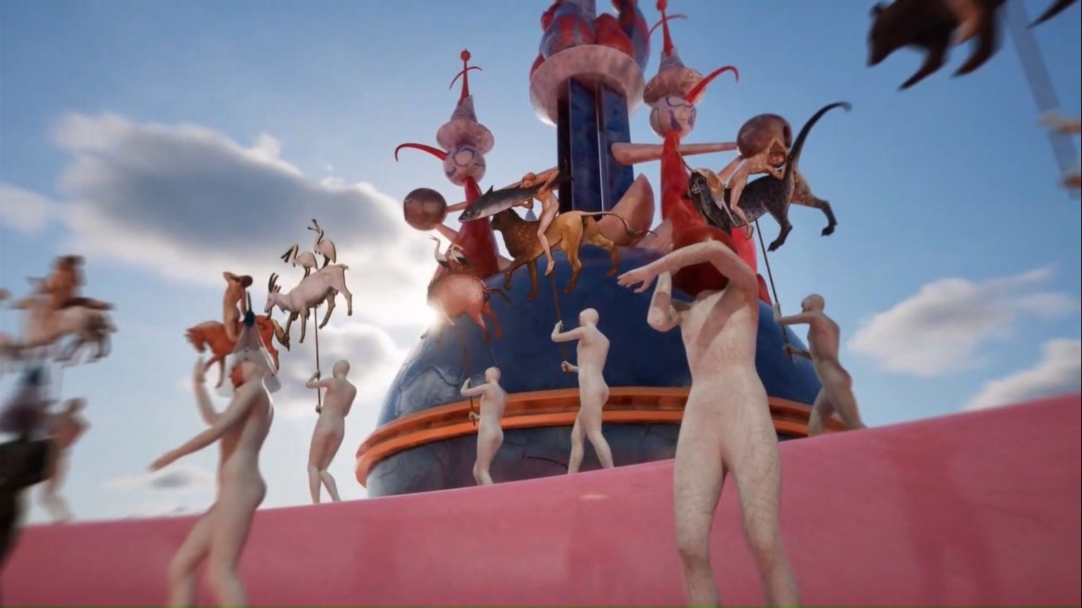 ストーリーに沿って鑑賞を続けた先にあるのが、ボス《快楽の園》。最後の作品にふさわしく、祝祭ムードただよう光景が広がる。