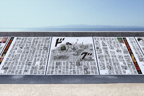 有明海を一望できる防波堤に、コミックス1巻から77巻までの全ページを掲出する「キングダム読破堤(どくはてい)」が登場。