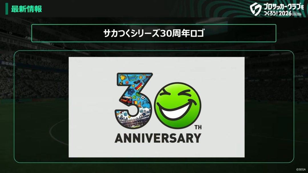 2月23日に「30周年記念」との表記が見えるが、これは2026年2月23日にシリーズ第1作目の発売からちょうど30周年を迎えることにちなんだイベントが開催されることを示している。『サカつく2026』でもシリーズ30周年を祝う企画が進行しているようで、オープンされたばかりの30周年特設サイトなどで徐々に明らかになっていくようだ。